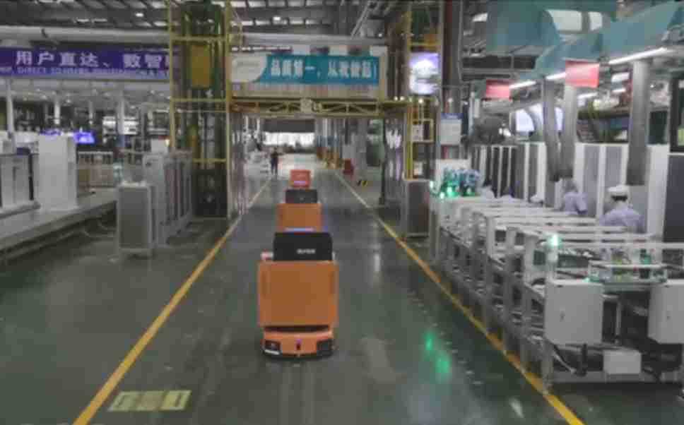 为车载冰箱物流配送打造的智能解决方案,,,包含产中物流通过潜伏举升AMR搬运至线边,,,产后成品物流智能仓储,,,流程包含产中物流智能齐套入库,,线边安灯叫料AMR智能配送至线边,,,,成品入库、、出库,,通过无人堆高车机器人,,,智能仓储管理替代人工作业管理,,,实现更高存储、、、、更高效率、、、更具柔性化的解决方案。。。