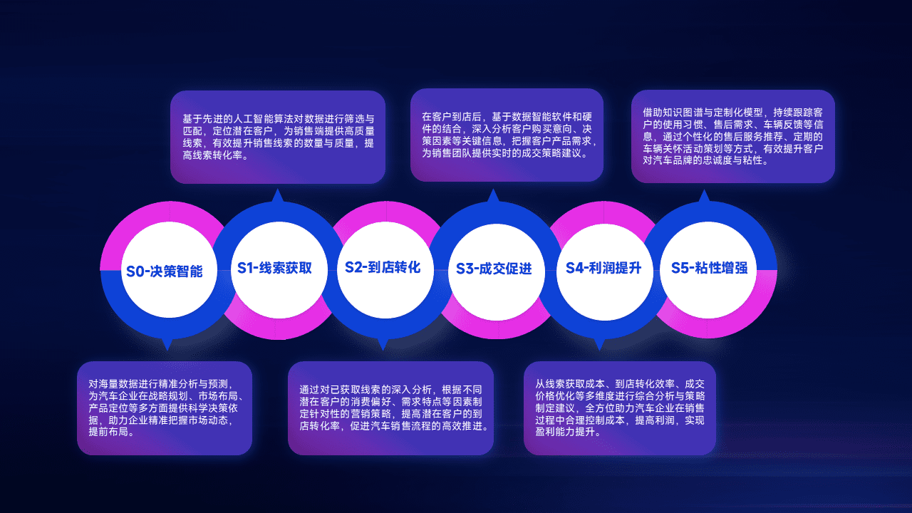 通过拓宽潜在客户来源、、优化线索分配并提高到店转化率,,以增强销售效率。。。同时,,,利用线索数据不断优化分析模型,,,,有效提升转化率,,,,扩大营销影响力。。。。